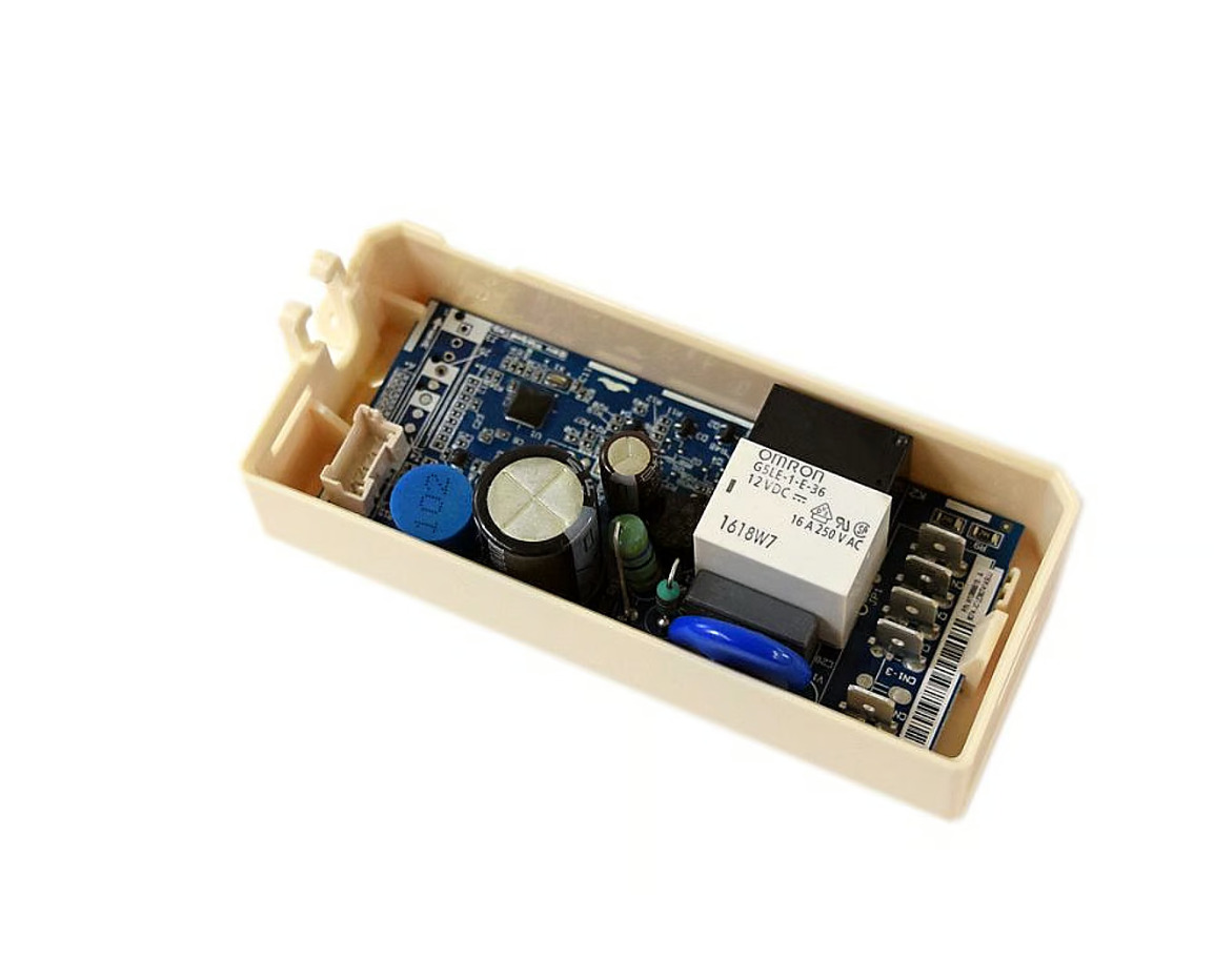 Electronic control board W11436574 manages the functions of the refrigerator such as cooling and defrost times.